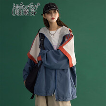 珀莱芬 两面穿外套女2021春秋新款韩版学生宽松显瘦时尚盐系冲锋衣女薄款日系bf风连帽棒球服上衣潮 蓝色 L