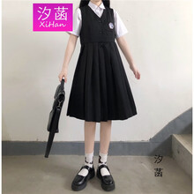 汐菡夏天连衣裙女学生韩版中长款背带裙套装衣服高中生初中生女生裙子夏季中学生清新宽松显瘦吊带裙一套5 黑色裙子套装 均码