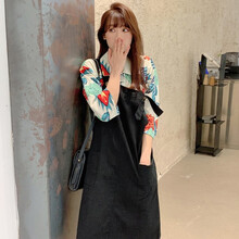 连衣裙女冰吉羽2021年夏季新款韩版潮流背带裙碎花衬衫套装法式茶歇洋气复古温柔系时尚炸街大码夏装 衬衫+背带裙 M