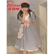 北极绒甜美小清新海军领连衣裙女夏季新款日系学院风泡泡袖显瘦A字长裙 图片色 【关注店铺送小礼物】 L
