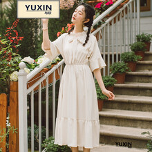 与欣连衣裙学生女生裙子女学生高中生初中生女装到脚踝日系甜美仙气森系连衣裙少女夏装新款长裙仙女裙子 杏色 2XL