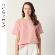 【第二件O元】Carey Kay短袖T恤女速干透气宽松休闲纯色百搭圆领女士薄款上衣夏季新品 香草粉 M-L(90-125)