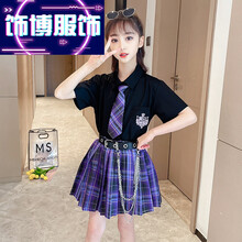 jk制服正版连衣裙夏装套装夏季格裙电竞少女小学生学院风韵雅蒂 黑衬衫套装加 150cm