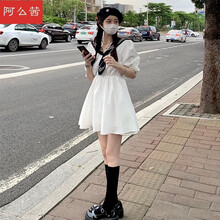 阿么茜海军领连衣裙少女夏装2021新款初中高中学生日系学院风水手服裙子 白色 M
