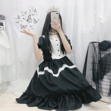 洛丽塔裙子日系少女可爱软妹萝莉裙雪纺lolita短袖连衣裙仙女裙夏 黑色 均码