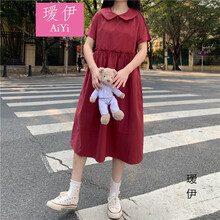 瑷伊夏天连衣裙女学生日系中长款高中初中生少女生裙子夏季衣服小个子中学生清新可爱宽松显瘦仙女裙9 红色 均码