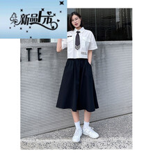 夏季校服英伦制服学院风套装初高中生毕业学生班服ins港风裙子 女套装白衬衫+黑半裙+黑小领带 XL