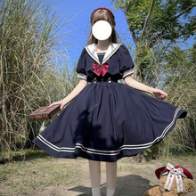 雅鹿 【严选良品】韩版jk海军风连衣裙女夏季日系新款学生百搭显瘦拼接中长款a字裙 藏青色+蝴蝶结 S 【关注店铺送小礼物哦】