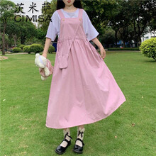 茨米萨 夏天女生背带长裙子少女夏装2021年新款初中生高中学生可爱日系学院风连衣裙女装潮 单件粉色背带裙配 L