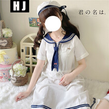 【时尚新款】日系少女海军领水手服领带短袖连衣裙女夏软妹学生小清新JK娃娃裙 白色 均码
