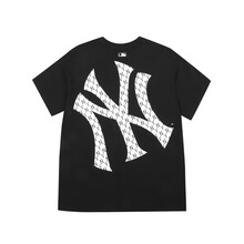 MLB短袖男女通用情侣装韩版T恤女NY黑色老花休闲宽松夏装 黑色老花NY 105/XL(尺码偏大)