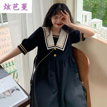 炫芭蔓初中学生海军领连衣裙少女夏装2021新款韩版宽松日系学院风长裙子潮 黑色 S