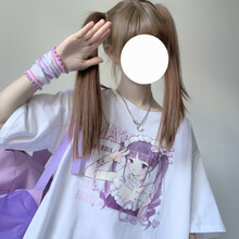 萨姆依 原创日系动漫少女印花短袖T恤女夏季2021新款韩版宽松ins潮原宿风可爱软妹jk上衣服 白色 XL