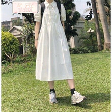 与欣蝴蝶结系带学院风短袖POLO领连衣裙女学生日系百搭显瘦中长a字裙 蝴蝶系带连衣裙白色 均码