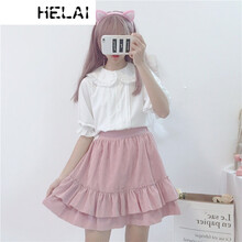 春夏Lolita洛丽塔内搭少女灯笼袖娃娃领衬衫jk日系短袖学生制服 白色 单件短袖衬衫 均码