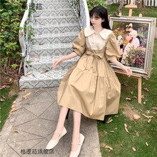 格逻菈连衣裙学生夏天高中生初中生女生裙子夏季韩版衣服日系长款仙女裙少女中学生女孩原宿风宽松百搭中长裙 卡其色 均码