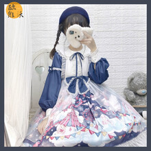 洛丽塔Lolita原创梦境游乐园OP长袖连衣裙萝莉塔日系公主裙文艺学生少女洋装 绀色裙子+发带 L