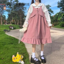 BQBG 日系两甜美娃娃领衬衫+学院风背带裙女学生韩版宽松中长裙子 粉色背带裙 【单】 M
