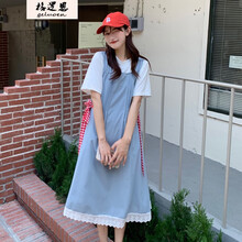 格逻恩背带裙学生衣服夏天初中生高中生少女生裙子夏气质小清新仙女裙日系学院风宽松中长款连衣裙套装 背带裙套装 L