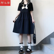 阿么茜夏天日系连衣裙少女夏装2021新款初中高中学生可爱学院风薄款收腰裙子短袖女夏 黑色 S