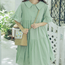 独绽中学生日系娃娃领连衣裙2021夏季少女果绿色娃娃裙短袖连衣裙心机精神怀旧青年柔美不过时 绿色_欧洲站初恋水洗实用治愈系美少女泫雅风梦幻...