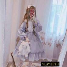 洛丽塔裙子少女感秋装女新款日系软妹学生穿搭仙女裙连衣裙 浅灰色 均码