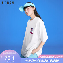 【小熊一闲】乐町简约印花T恤2021夏季新款短袖t恤女宽松情侣款 白色现货 L