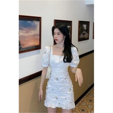 ZAIER 2021夏季新款法式复古碎花泡泡袖连衣裙夏季新款ins收腰显瘦方领短裙女潮 图片色 S75-90斤(优质版)