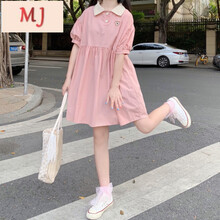【新疆棉】【时尚新款】蒙橘小个子软妹日系学院风宽松泡泡袖连衣裙子少女夏季韩版可爱娃娃裙 粉色版 均码