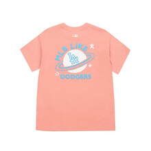 MLB短袖男女通用情侣装韩版T恤女LA橘粉行星休闲宽松夏装 橘粉行星LA 95/M (尺码偏大)