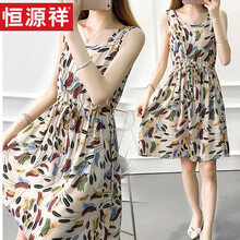 【特价捡漏】恒源祥《国货之光》品牌女装棉绸连衣裙女夏季新款小个子时尚外穿波点碎花人造棉无袖背心 杏色 马尾草2号 XL