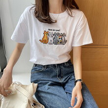 芝姮T恤女2021夏季新款日系猫咪刺绣短袖T恤女学生休闲打底衫上衣女 白色 L