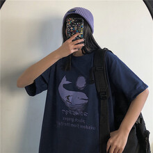 风采兔 港风ulzzang日系复古原宿宽松bf风半袖潮牌男女情侣短袖t恤潮夏季 牛仔蓝 XL