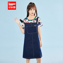 IEF/爱依服连衣裙2021夏季新款潮日系花朵t拼接背带裙设计假两件2604A-B2083- 牛仔深蓝 S