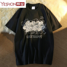 雁皇YESHON轻奢高端品牌古着怪味少女短袖上衣潮夏季ins宽松韩版可爱日系T恤学生半袖体恤 黑色 L