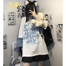 京凌 2021夏季新品学生日系vintage短袖t恤女夏季韩版宽松ins潮牌甜酷少女大印花清爽上衣 白色 L
