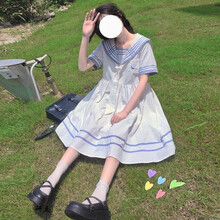 仙森系海军领连衣裙女夏季新款日系学院风宽松显瘦过膝中长裙子 白色 S