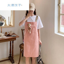 工装背带裙子少女夏装2021年新款初中高中学生日系可爱闺蜜连衣裙 白衣粉裙两配小熊 S
