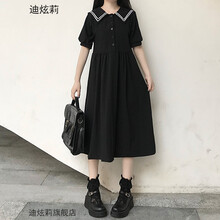 迪炫莉连衣裙学生夏天女生裙子高中生少女初中生夏季韩版短袖衣服中学生可爱学院风仙女海军风宽松显瘦中长裙 黑色 均码