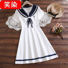 笑染 夏天青少年海军风连衣裙甜美少女夏季新款水手服初中高中学生日系学院风裙子 白色(9783#) M