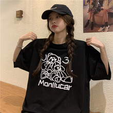 萨姆依 日系复古宽松oversize小熊网红美式短袖T恤女夏季新款韩版学生bf原宿风上衣ins潮 黑色 2XL