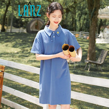 岚烨刺绣小雏菊Polo领连衣裙女夏季2021新款日系初恋学生裙子温柔风森系长裙 蓝色 均码