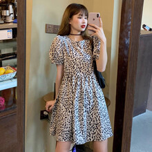 ZAIER 2021夏季新款2021年新款韩版宽松显瘦小个子裙子豹纹炸街短袖法式连衣裙女 图片色 L