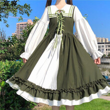 宾容 设计日系软妹Lolita洋装海军领系带连衣裙女 绿色【优质版】 均码