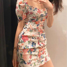 ZAIER 2021夏季新款泫雅风ins超仙桔梗初恋森系rouje碎花小雏菊泡泡袖za连衣裙子女夏 图片色 L