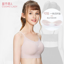 都市丽人瑜伽睡眠运动内衣女时尚舒适款透气细肩带防走光无钢圈薄模杯免穿文胸2V9301 豆沙粉 M(75A/B/C)