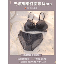 SEEMAX轻奢品牌 无痕内衣女 小胸聚拢少女调整型收副乳防下垂光面文胸套装 铁灰色套装 75B