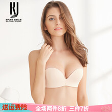 法国KJ无钢圈无肩带隐形文胸性感聚拢一字扣上托胸贴抹胸品牌内衣婚纱礼服防滑女士胸罩新款 光面肤 75B=34B(单件文胸)