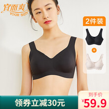 宜而爽 2件装无钢圈冰丝无痕文胸V领背心式运动胸罩薄款聚拢美背内衣 黑色+肤色 80B