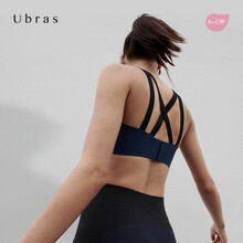 Ubras交叉美背减震中强运动文胸无钢圈运动内衣女瑜伽健身短胸衣 深蓝色 L